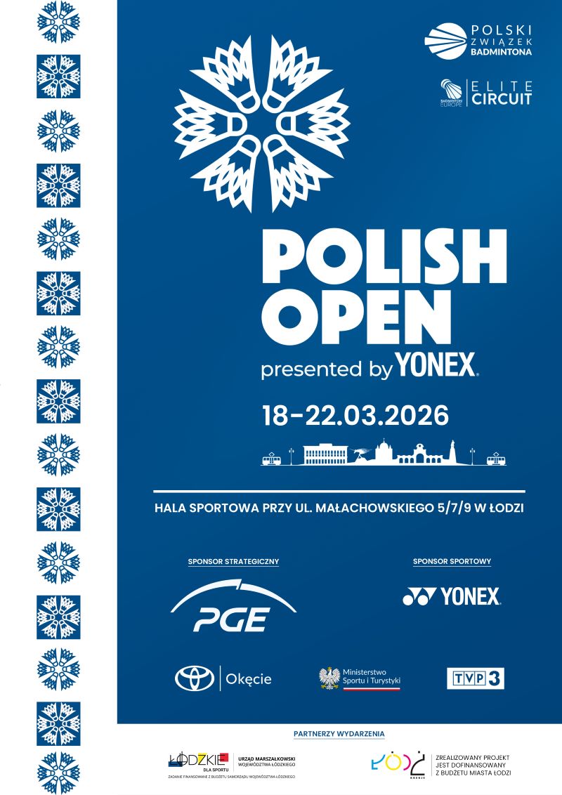 Już za niespełna tydzień (18 marca 2026) w hali sportowej przy ul. Małachowskiego 5/7/9 w Łodzi rozpocznie się największy turniej w kalendarzu Polskiego Związku Badmintona – Polish Open 2026 presented by Yonex. W turnieju weźmie udział ponad 350 zawodników z 41 Państw Świata. W rywalizacji weźmie udział również niemal cała polska kadra narodowa. Wstęp na widownię jest darmowy.